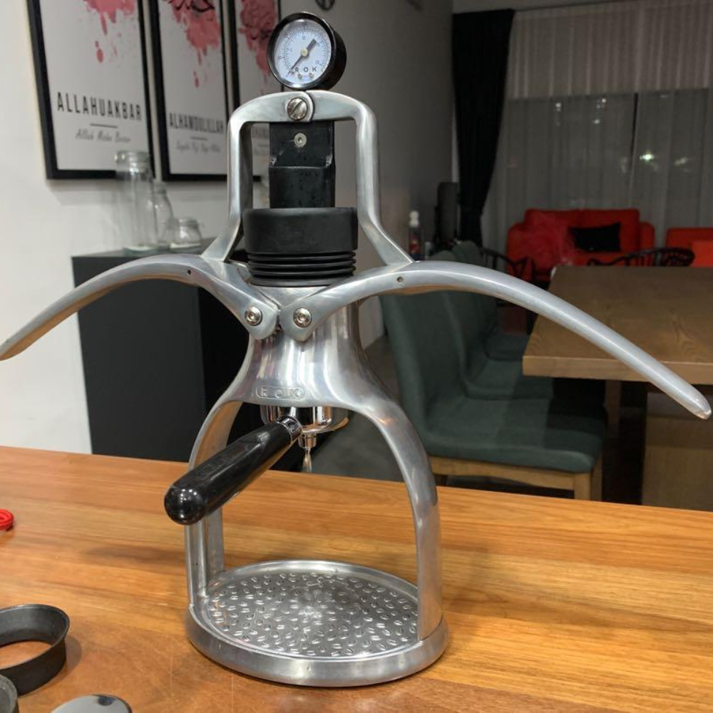 Đặc biệt, ROK Espresso GC Commercial Edition được trang bị đồng hồ đo áp suất, giúp bạn theo dõi và điều chỉnh chính xác áp suất trong quá trình pha chế.