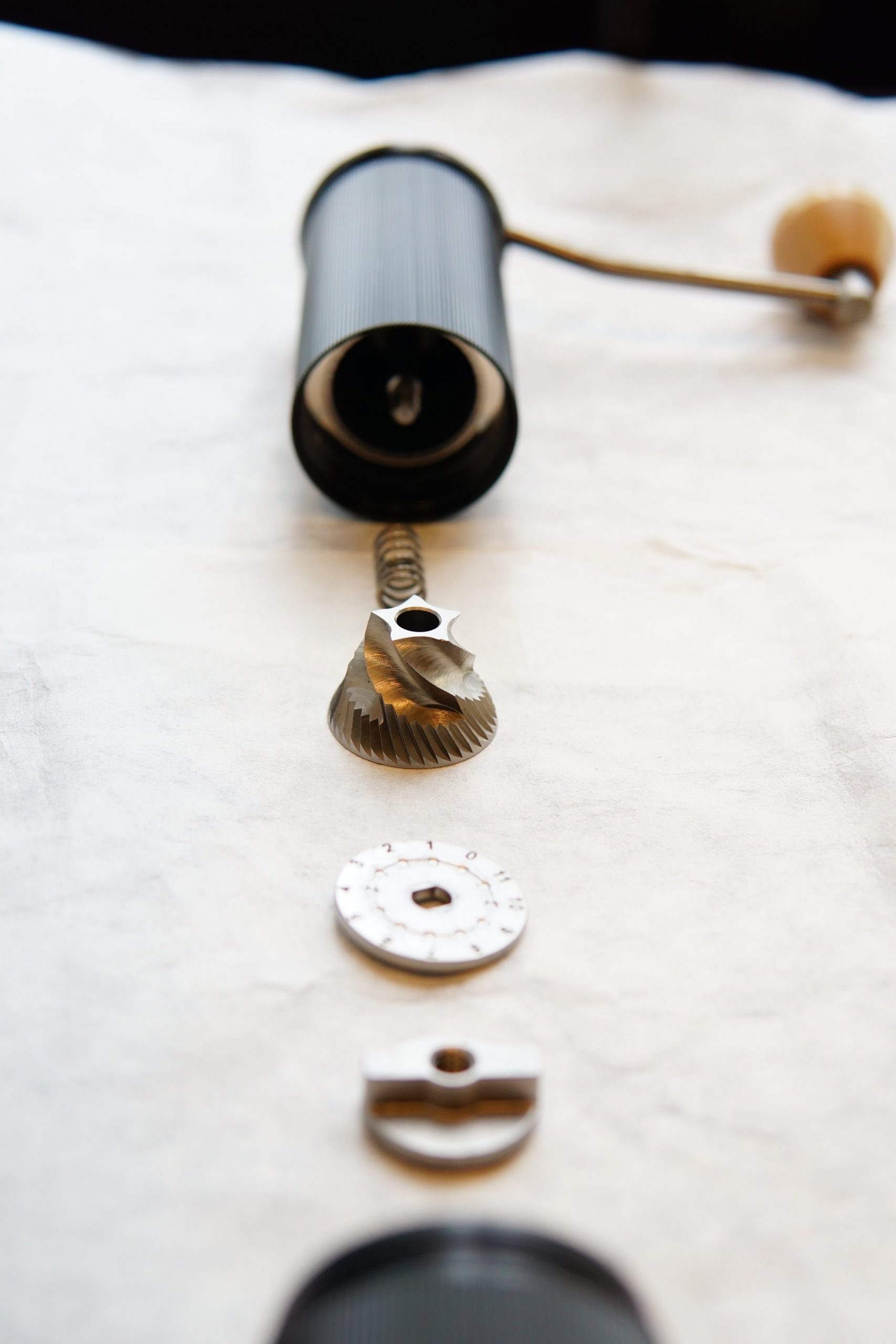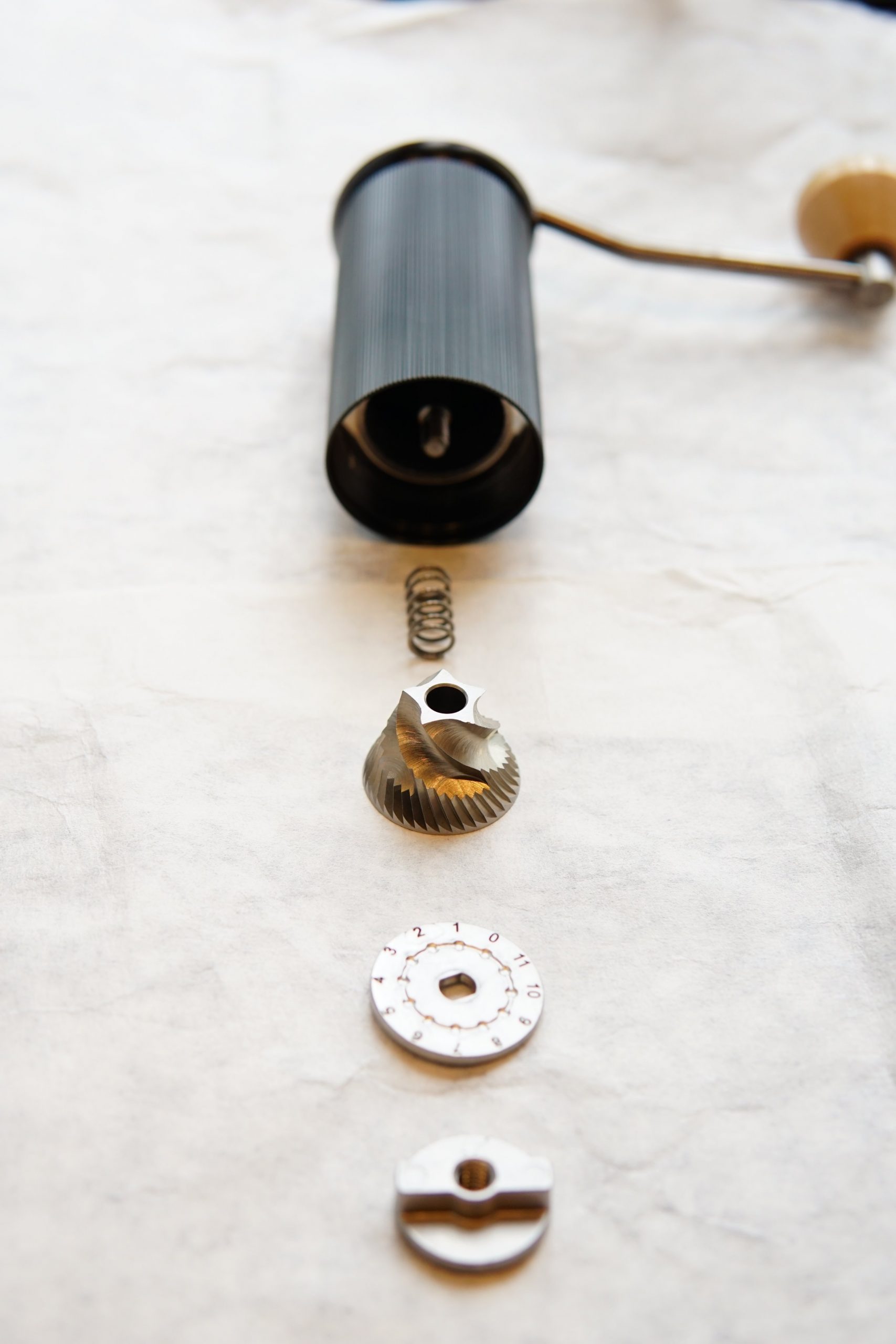 Bên trong của cối xay tay có gì? Đi cùng với thiết kế tối giản – chức năng tối đa cối xay tay Guru black được thiết kế bộ điều chỉnh bên trong hoàn toàn bằng thép đúc chống gỉ. Lưỡi xay được cắt sắc nét, với khoảng 120 vết cắt đều đặn tạo hình nón làm tăng tốc độ xay hạt kết hợp cùng hai vòng trục trên dưới giữ cho lưỡi xay được cân bằng, giúp cà phê khi xay đều hơn.