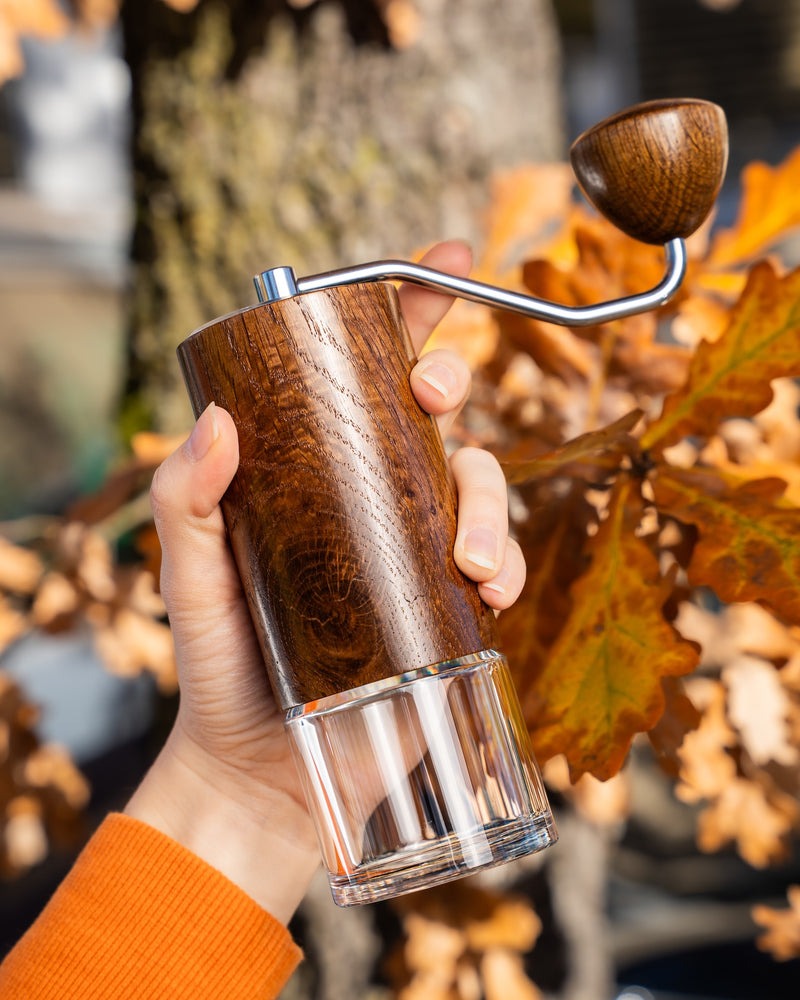 Comandante C40 Vintage Oak Classic và Royal sử dụng cùng nền tảng cơ khí. Sự khác biệt không nằm ở burr hay cấu trúc bên trong — mà nằm ở vật liệu hoàn thiện và trải nghiệm sở hữu.