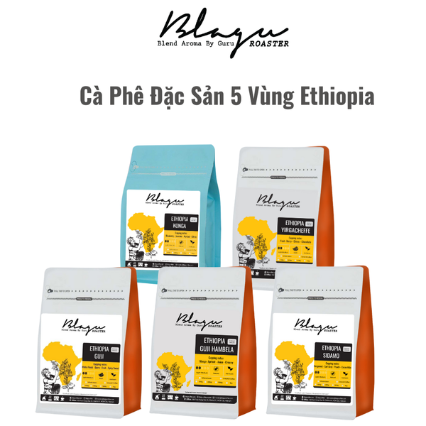 Cà phê Ethiopia mang đến hương vị đa dạng tùy thuộc vào từng vùng trồng. Combo cà phê đặc sản Ethiopia mang hương vị của từng vùng trồng.