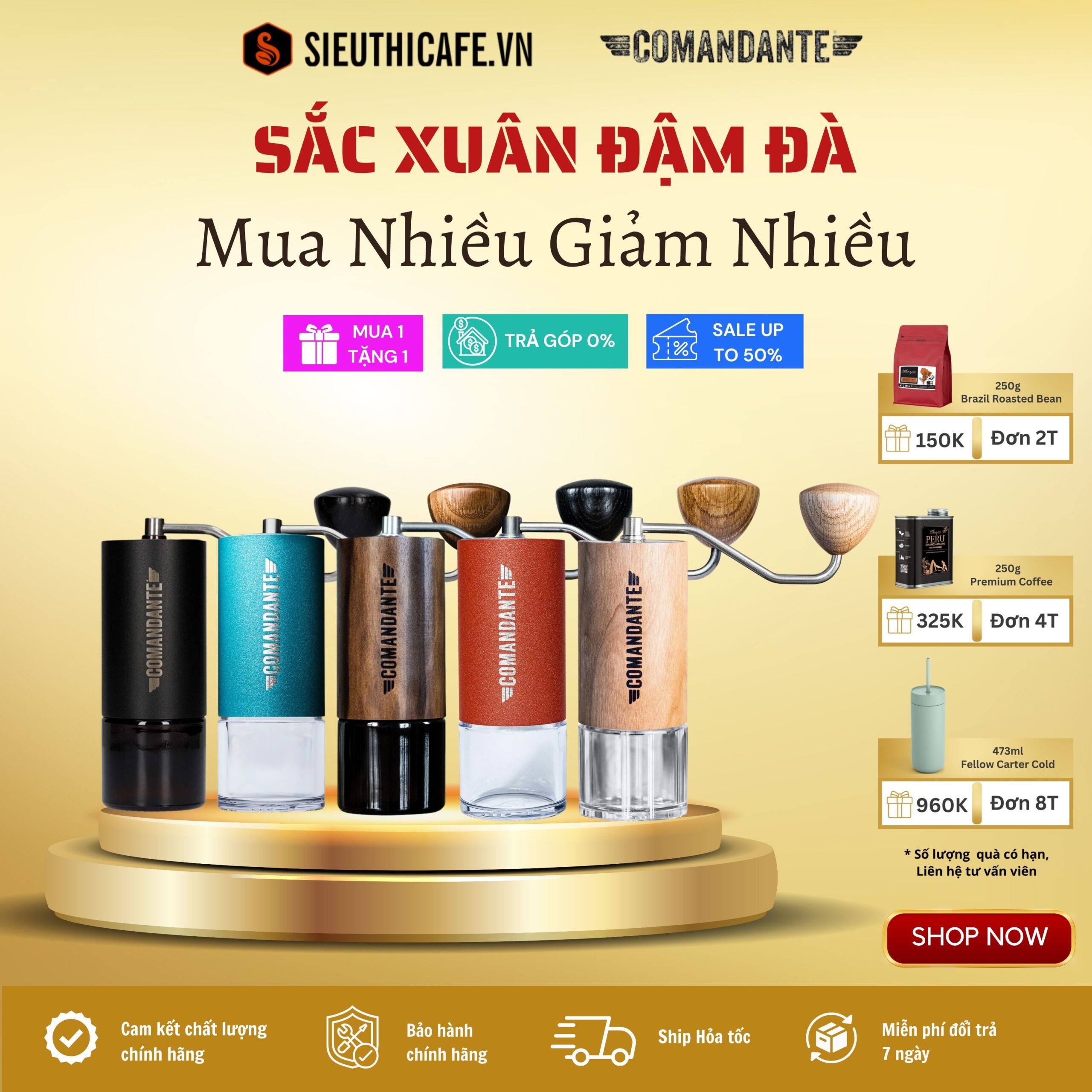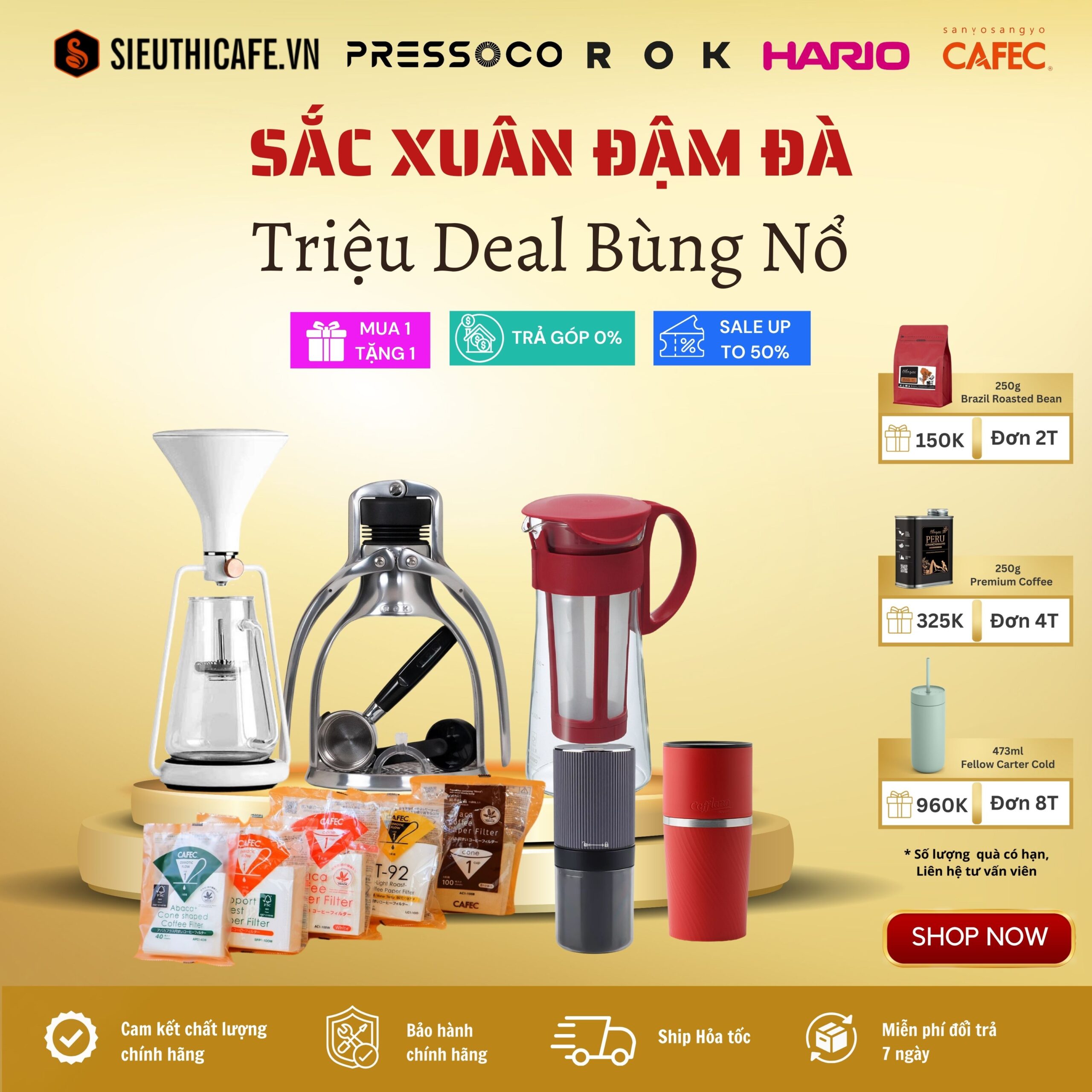 Đừng lo lắng về việc lựa chọn sản phẩm, Sieuthicafe đã chuẩn bị một bộ sưu tập đa dạng từ các thương hiệu nổi tiếng. Bạn sẽ có cơ hội mua sắm với ưu đãi lên đến 50% cho hơn 200 sản phẩm từ các thương hiệu như Fellow, Pedrini, ROK, Comandante, Pressoco, Hero, Blagu, ILLY và nhiều thương hiệu khác. Sieuthicafe cam kết mang đến cho bạn những sản phẩm chất lượng và đa dạng để đáp ứng mọi nhu cầu và sở thích của bạn.