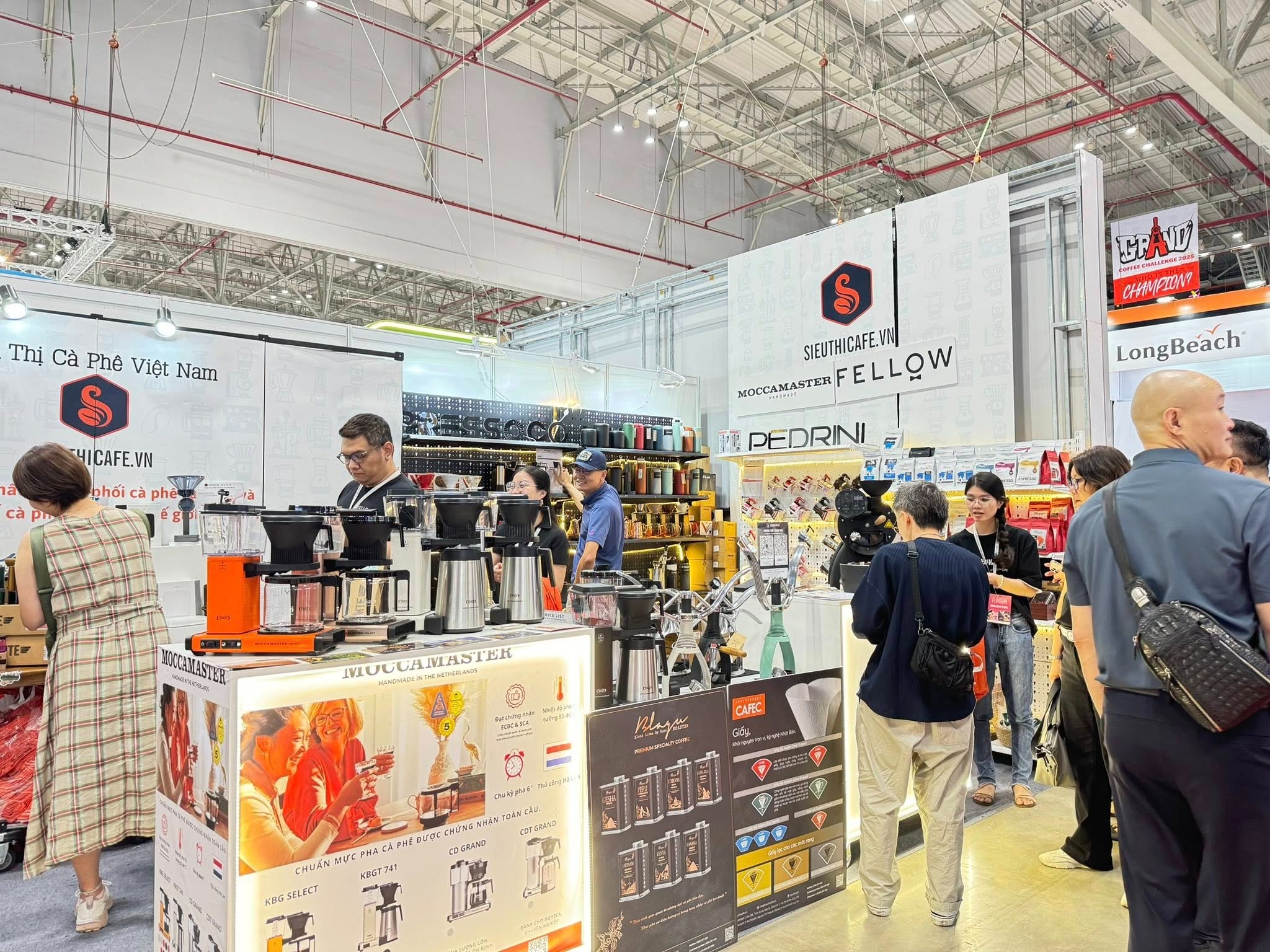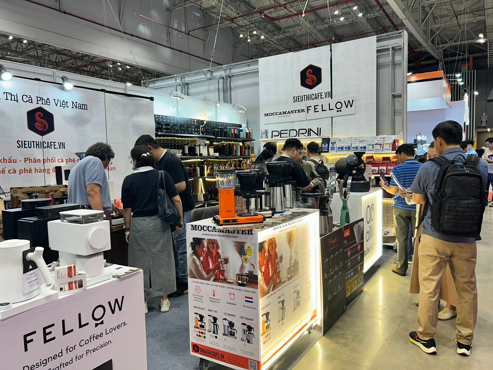 Gian hàng của Sieuthicafe năm nay được thiết kế không gian mở, nơi bất kỳ ai cũng có thể dừng chân, tìm hiểu về các loại hạt cà phê và tự mình khám phá thế giới của những thiết bị pha chế đỉnh cao.