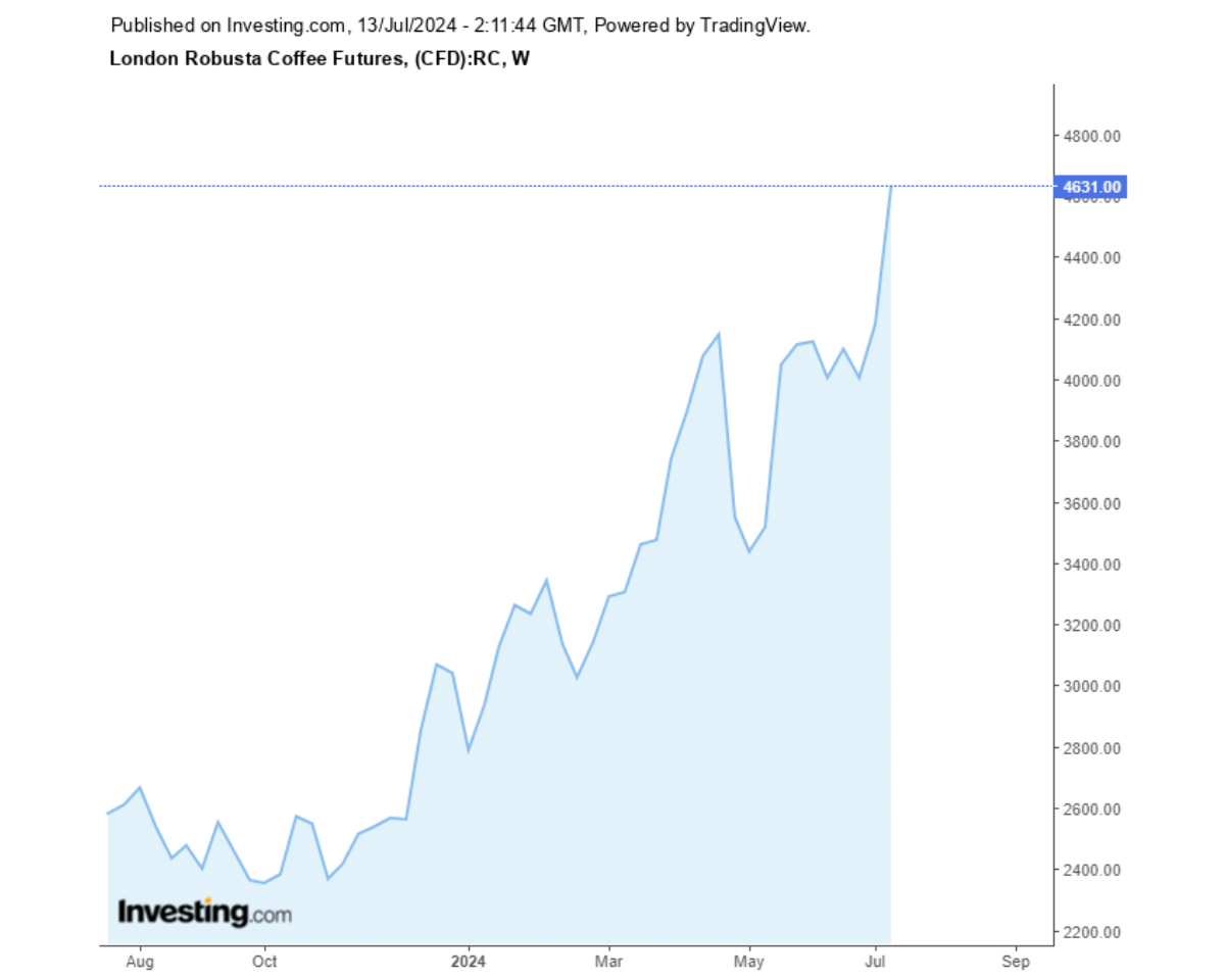 Giá cà phê Robusta tại sàn London