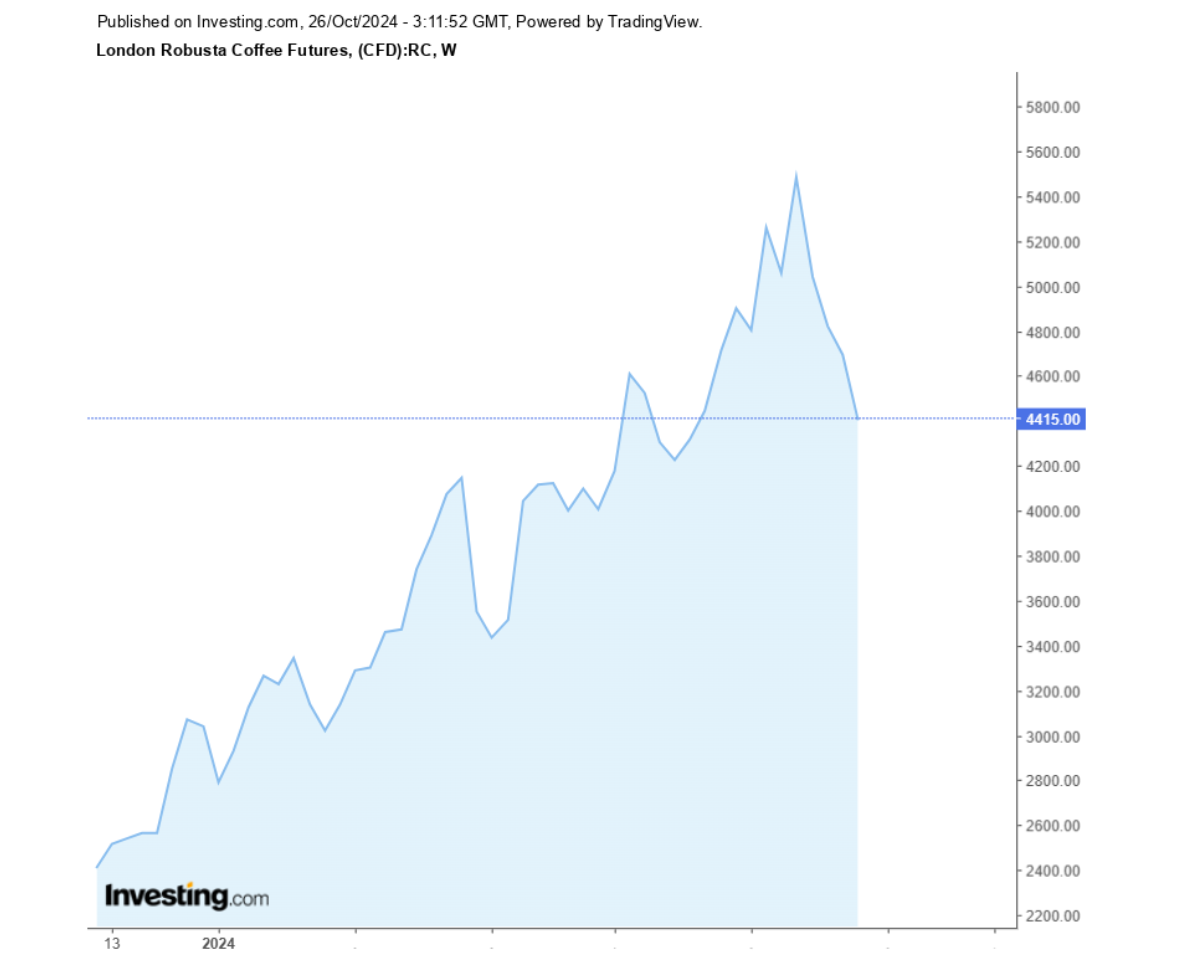 Giá cà phê Arabica và Robusta trong nước và quốc tế đang ở mức ổn định, giá cà phê đang ở mức ổng định. Theo Coffeenews giá cà phê Robusta tại sàn London và giá cà phê Arabica tại sàn New York vào ngày 26/10/2024 như sau:
