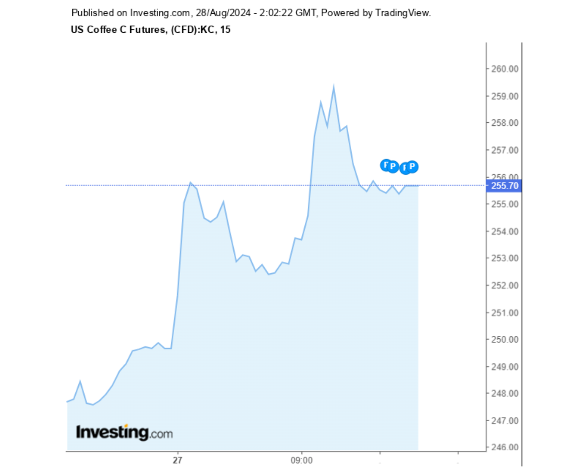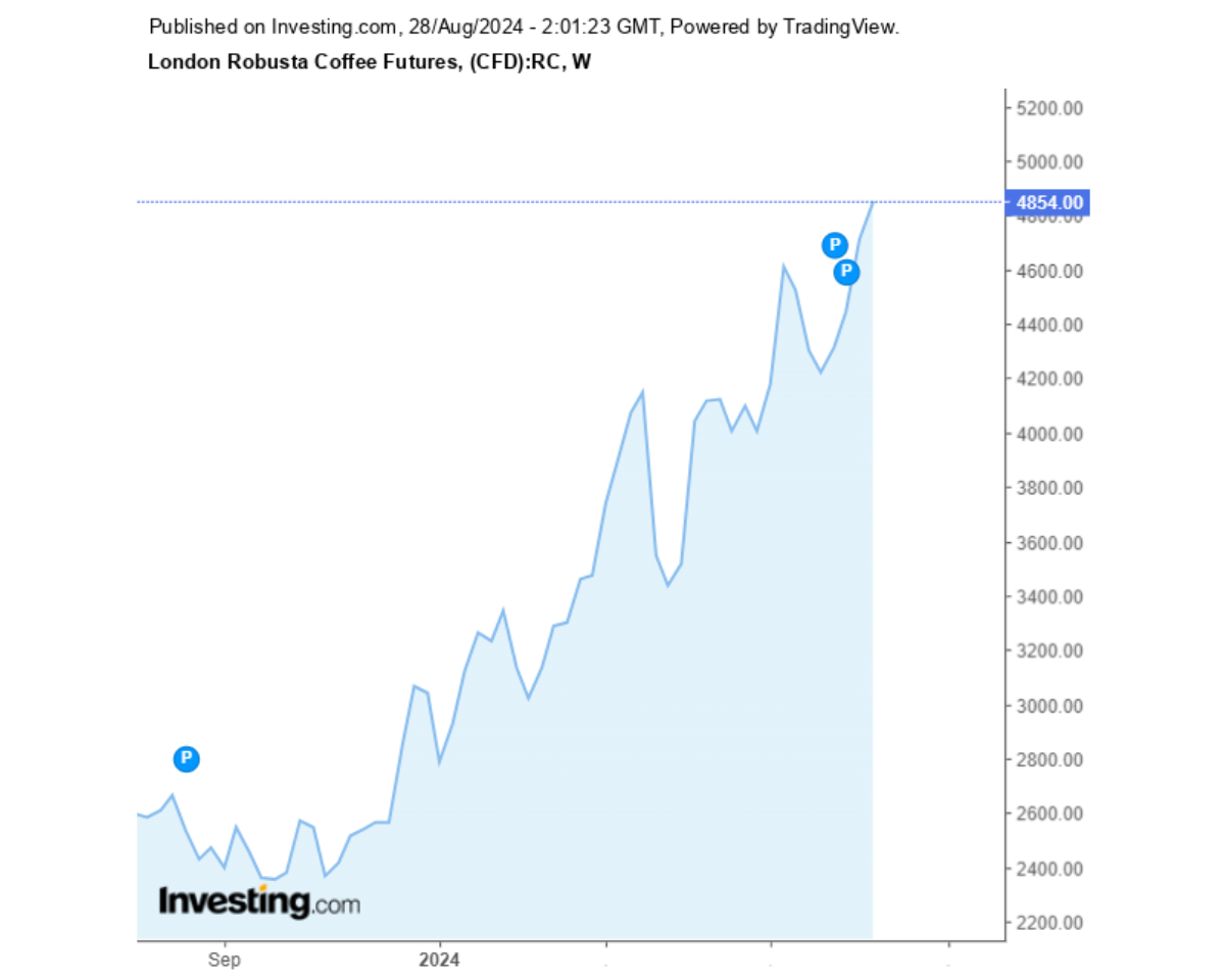 Giá cà phê Arabica tại sàn New York và Robusta tại sàn London đang tăng. Theo Coffeenews, Giá cà phê Arabica và Robusta hôm nay 28/08/2024 như sau: