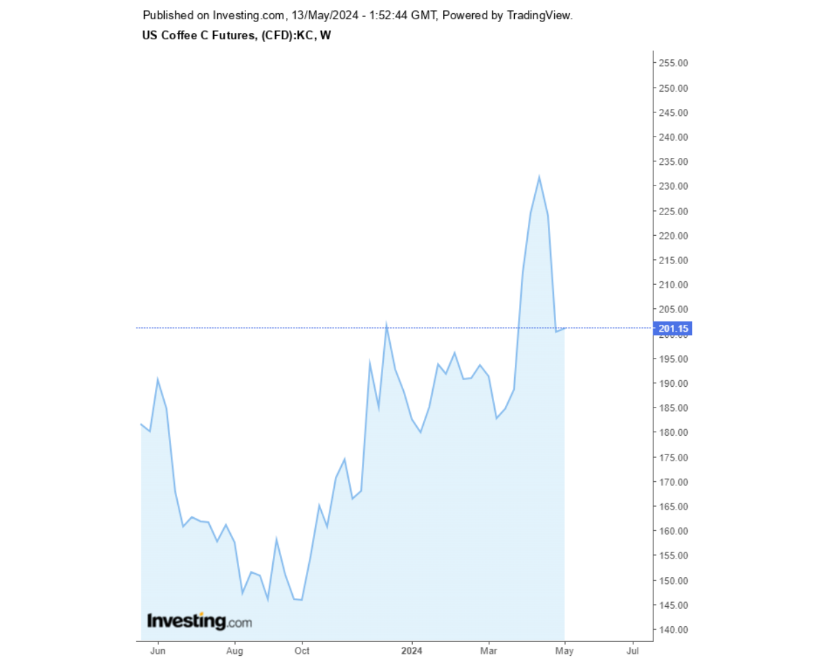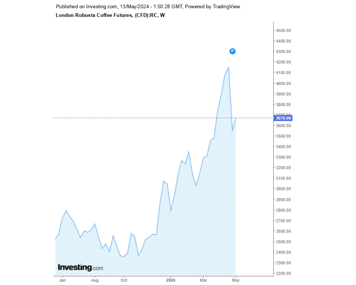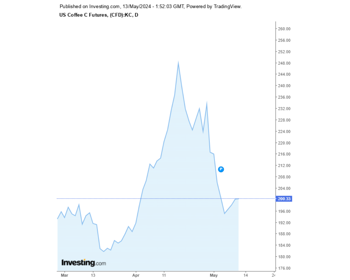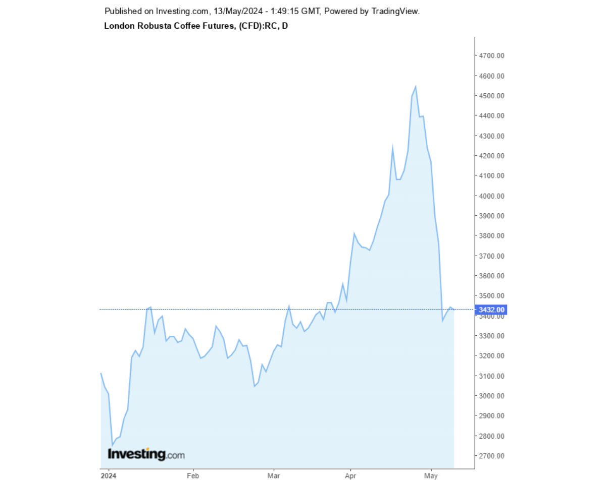 Giá cà phê Robusta sàn London và Arabica sàn New York 13/05/2024 có nhiều thayt đổi. Cùng Coffeenews cập nhật giá cà phê ngày hôm nay.