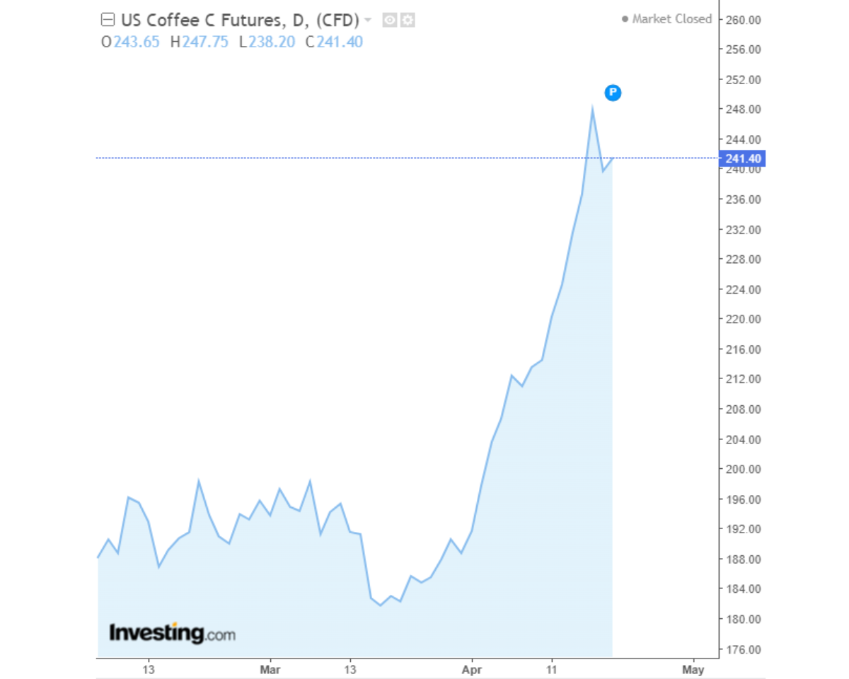 Giá cà phê 22/04/2024 đã giảm trở lại sau chuỗi ngày tăng giá. Cùng Coffeenews cập nhật giá cà phê ngày hôm nay.