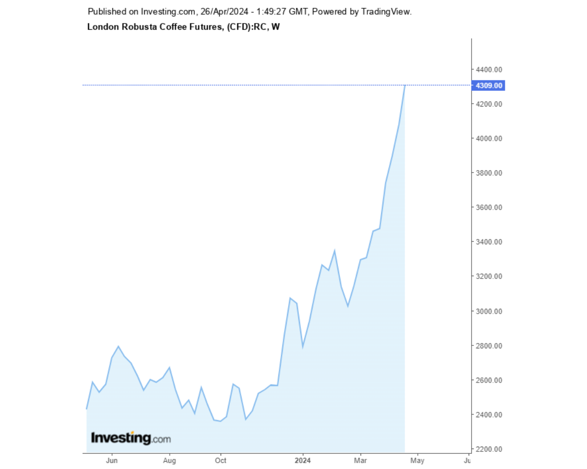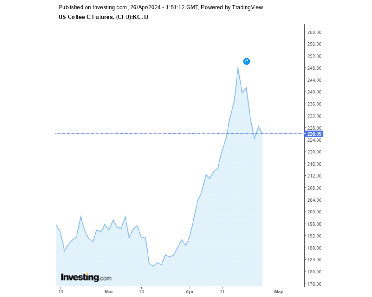Giá cà phê Robusta sàn London và Arabica sàn New York 26/04/2024 có nhiều biến động. Cùng Coffeenews cập nhật giá cà phê ngày hôm nay.