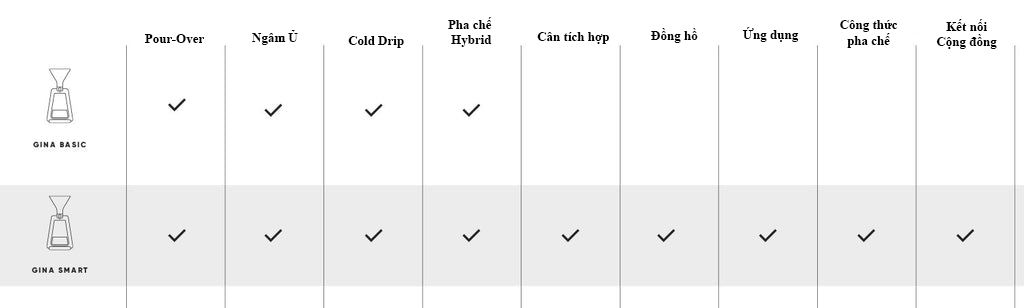 Thông thường các cá nhân sử dụng với mục đích gia đình sẽ phù hợp hơn với GINA Smart, trong khi các quán cà phê sẽ ổn hơn với dòng GINA Basic bởi vì thường các quán cà phê đã có sẵn những chiếc cân đắt tiền rồi. Nhưng như đã đề cập bên trên – cả hai đều dùng để pha chế những loại cà phê thượng hạng, nhưng sẽ có đôi chút khác nhau về cách thức tiếp cận.