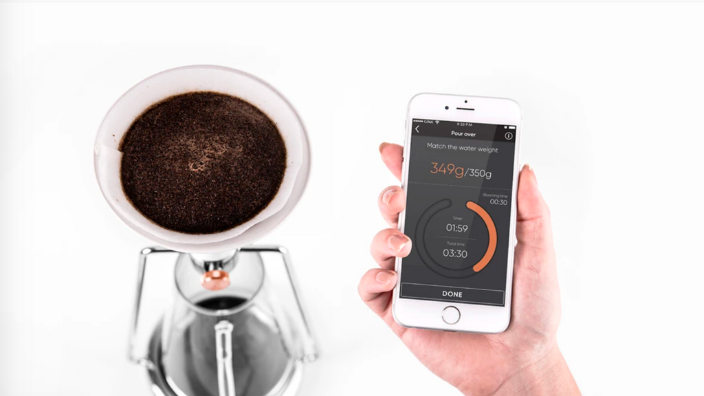 Vậy GINA Smart sẽ hoạt động như thế nào nếu không có màn hình hiển thị để thể hiện thông số. Nhờ bluetooth, bạn có thể kết nối điện thoại đến GINA Smart thông qua ứng dụng GINA, bạn có thể xem nó là trung tâm điều khiển cho dụng cụ pha chế của bạn. Ứng dụng GINA đóng vai trò là trợ lý hướng dẫn bạn pha chế từng bước, nó có thể giúp bạn cân lượng cà phê và tính toán lượng nước đủ để đạt được tỉ lệ cà phê và nước. Không cần tự tính toán thêm gì cả, việc còn lại của bạn là pha chế thôi.