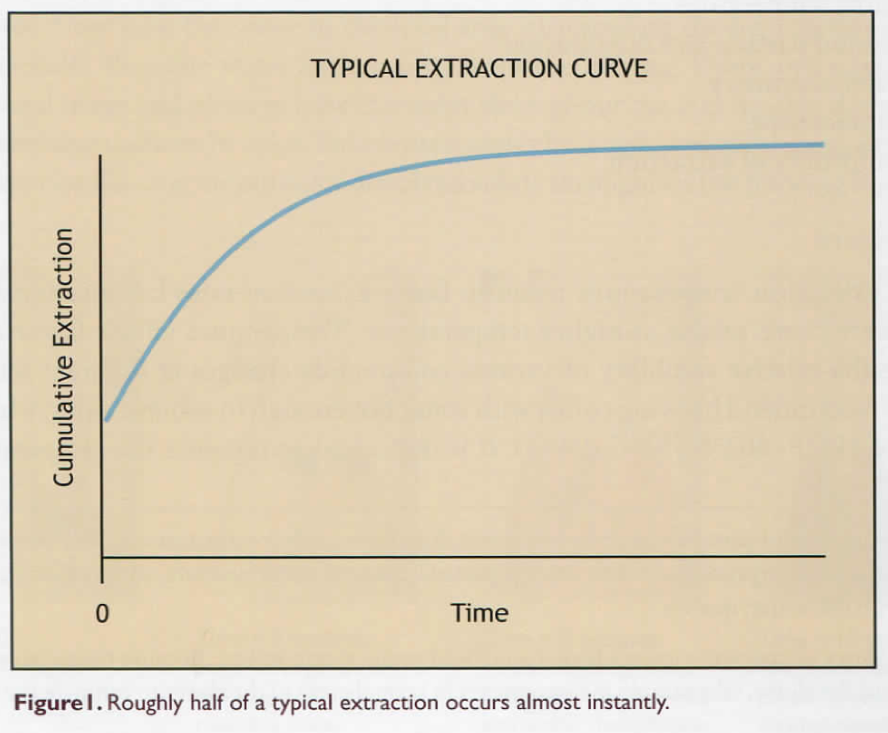 Sự chiết xuất sẽ bắt đầu rất nhanh nhưng tiếp diễn từ từ khi các chất rắn được đưa ra khỏi bột cà phê. Hình bên dưới là một đồ thị cơ bản về quá trình chiết xuất cà phê