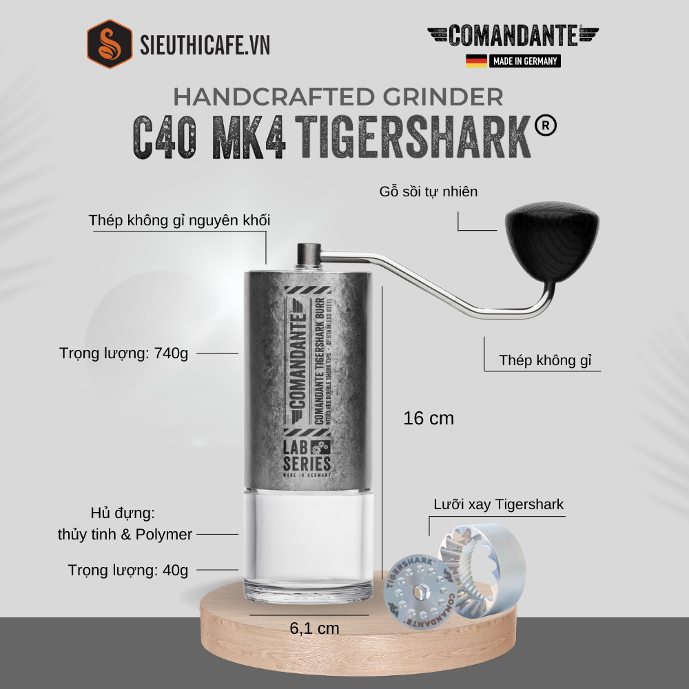 Dòng Lab Series của Comandante được sinh ra với mục tiêu rõ ràng: mở rộng biên độ hương vị bằng tư duy thiết kế đột phá. Trong đó, TIGERSHARK® là minh chứng thuyết phục nhất – một bộ burr không chỉ mạnh về hiệu năng mà còn sở hữu cấu trúc chưa từng có trong thế giới grinder thủ công. Đây chính là lựa chọn dành cho những người muốn bước ra khỏi “vùng an toàn” của Nitro Blade® và chạm tới giới hạn mới của extraction.