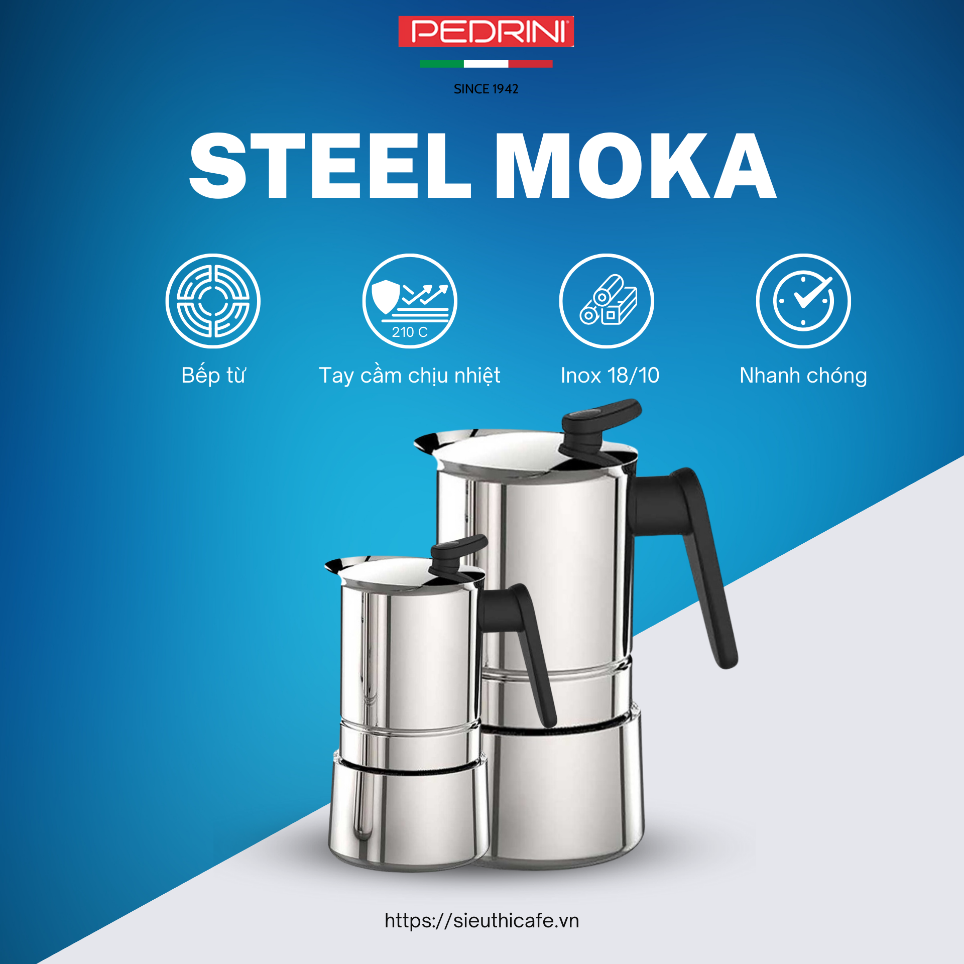 Khởi đầu ngày mới với Ấm Moka Pot Pedrini Steel Moka