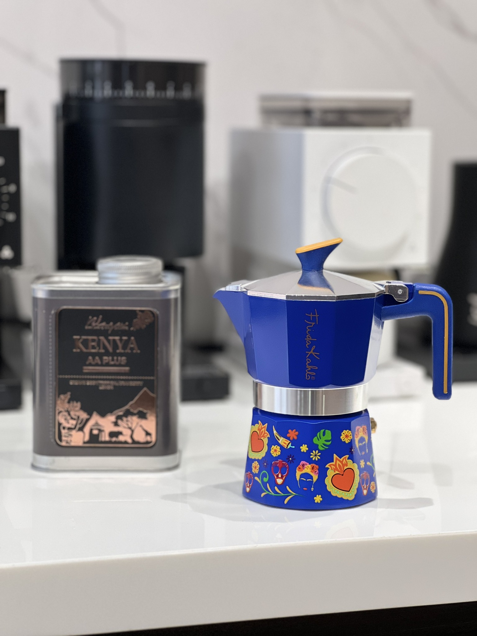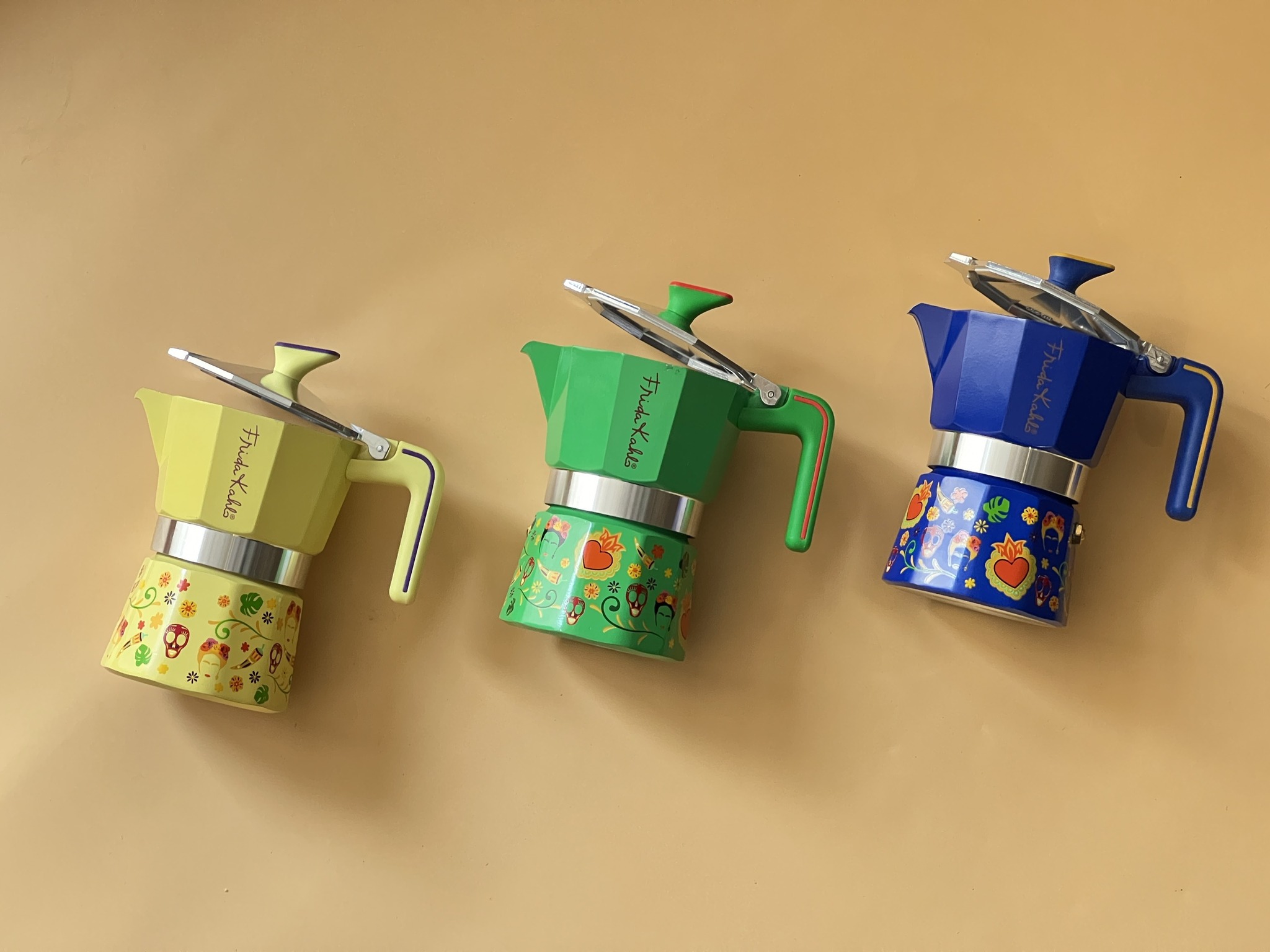 Với thiết kế tinh xảo và sử dụng những họa tiết ấn tượng cùng màu sắc rực rỡ, mỗi ấm đun Moka Pot là một câu chuyện riêng được lấy cảm hứng từ nghệ sĩ Frida Kahlo và nền văn hóa độc đáo của xứ sở Mexico.