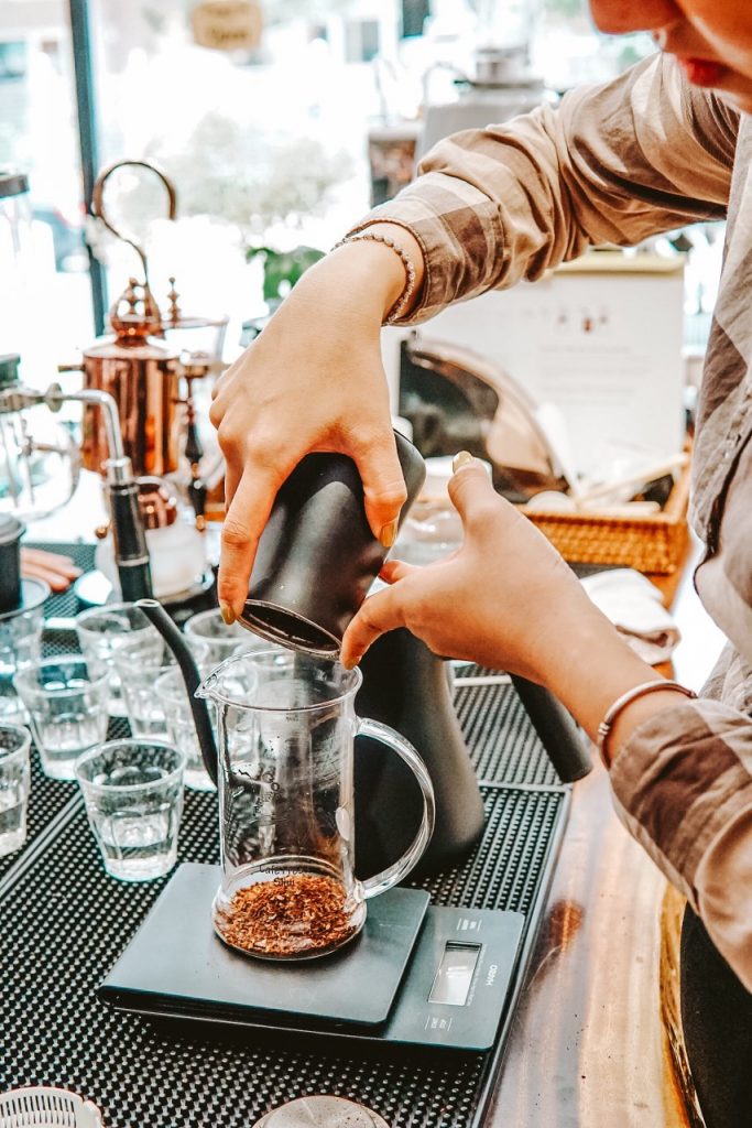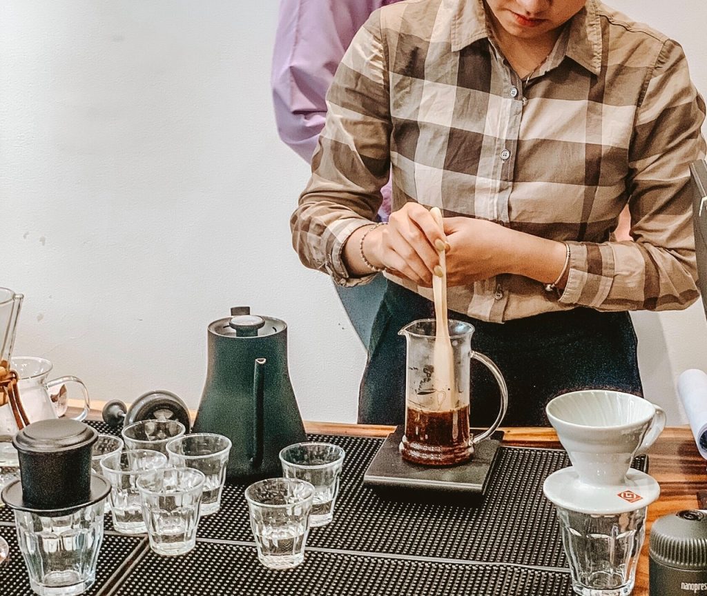 - Cân điện tử : sử dụng cân điện tử để cân chính xác khối lượng cà phê, lượng nước và thời gian