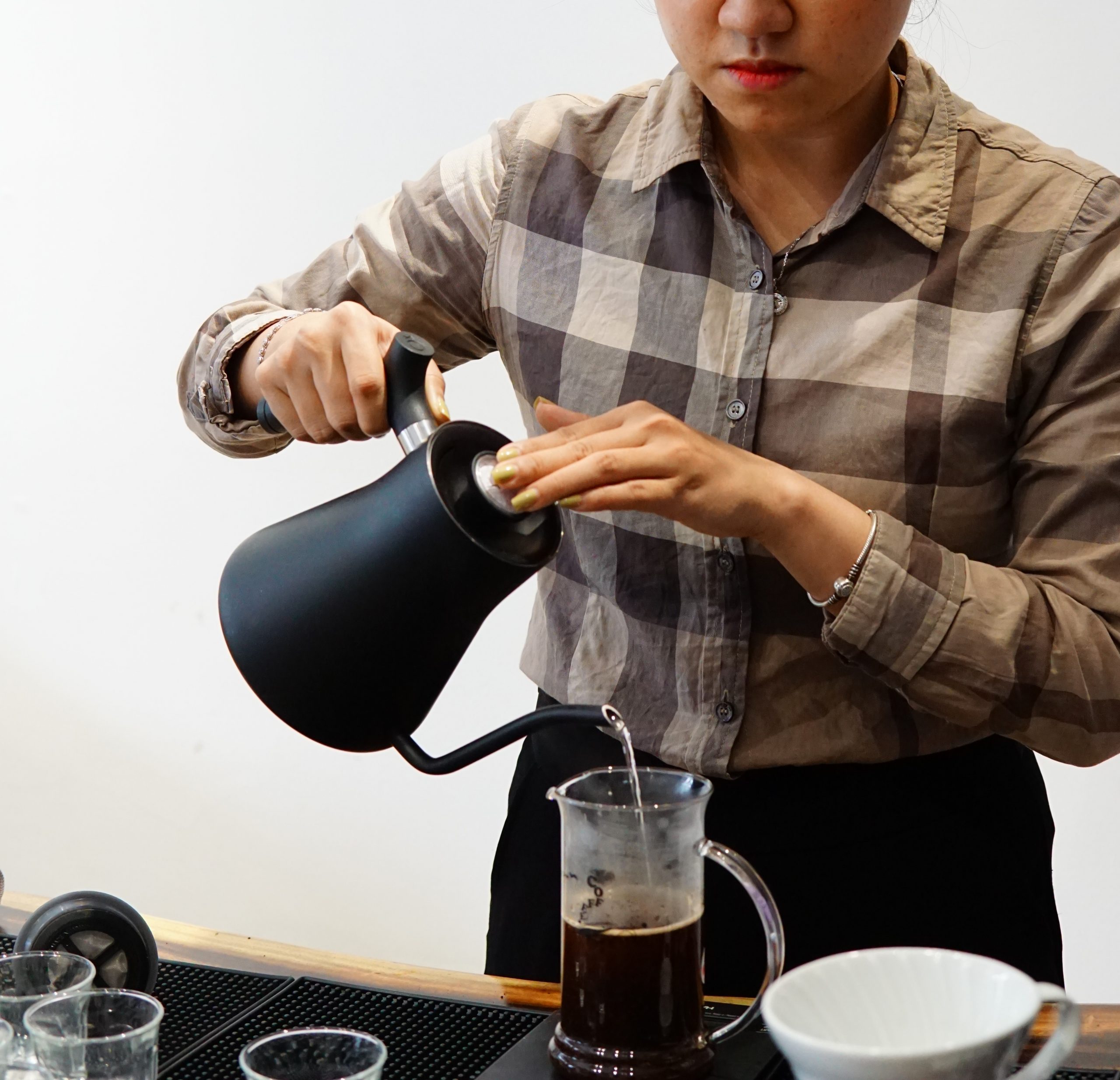 - Ấm rót nước bạn chọn những ấm rót nước cổ ngỗng chuyên dụng để điều chỉnh lượng nước rót dễ dàng