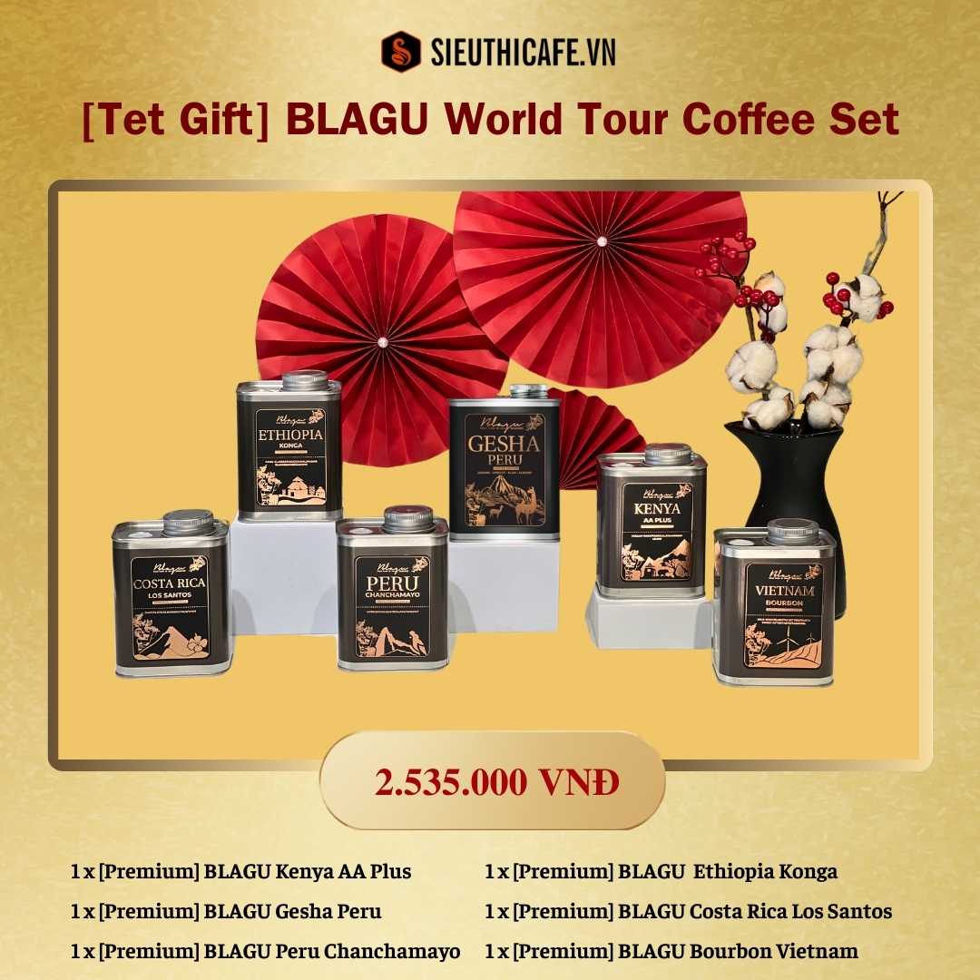 BLAGU World Tour Premium Coffee Set là bộ sưu tập cà phê đặc sản từ các vùng trồng danh tiếng trên thế giới. Mỗi origin mang một bản sắc hương vị riêng, tạo nên hành trình thưởng thức đa tầng và tinh tế.