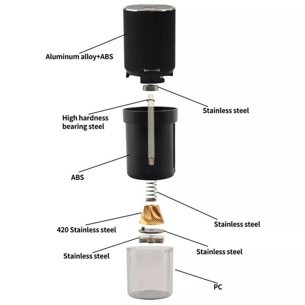 - Lưỡi xay: Thép không gỉ 420, 38mm, sáu lưỡi, hình nón mạ titan
