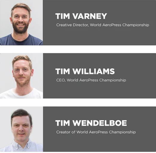 Hiện nay CEO Tim Williams cùng với Tim Wendelboe và Tim Varney dẫn đầu trong việc tiếp tục thực hiện các sự kiện Giải vô địch AeroPress.