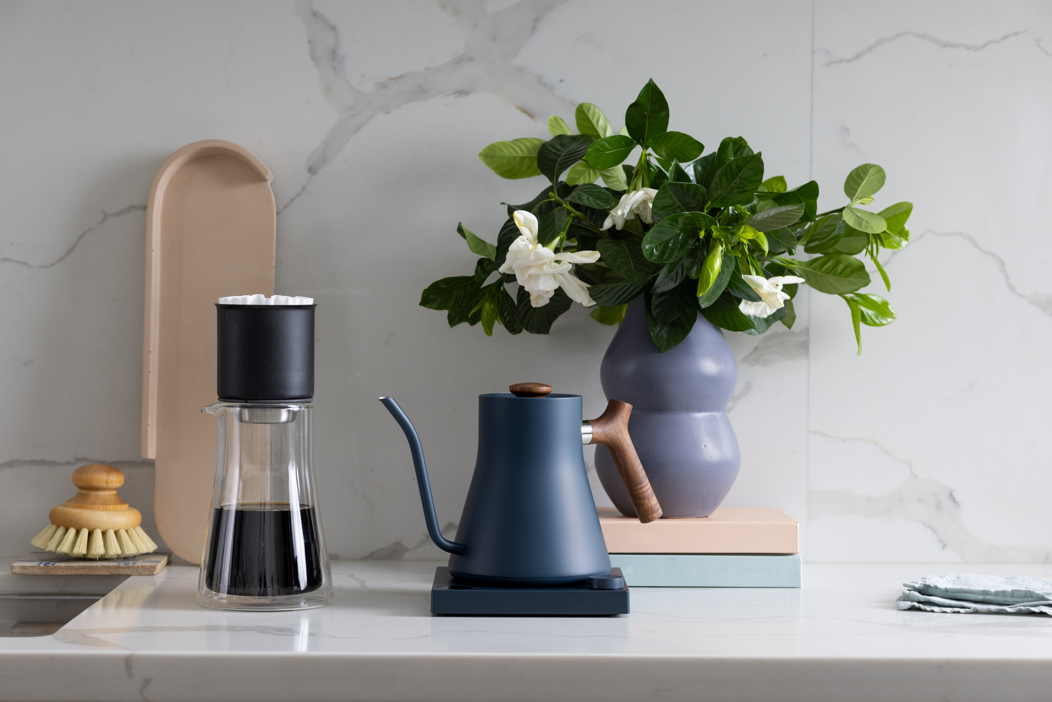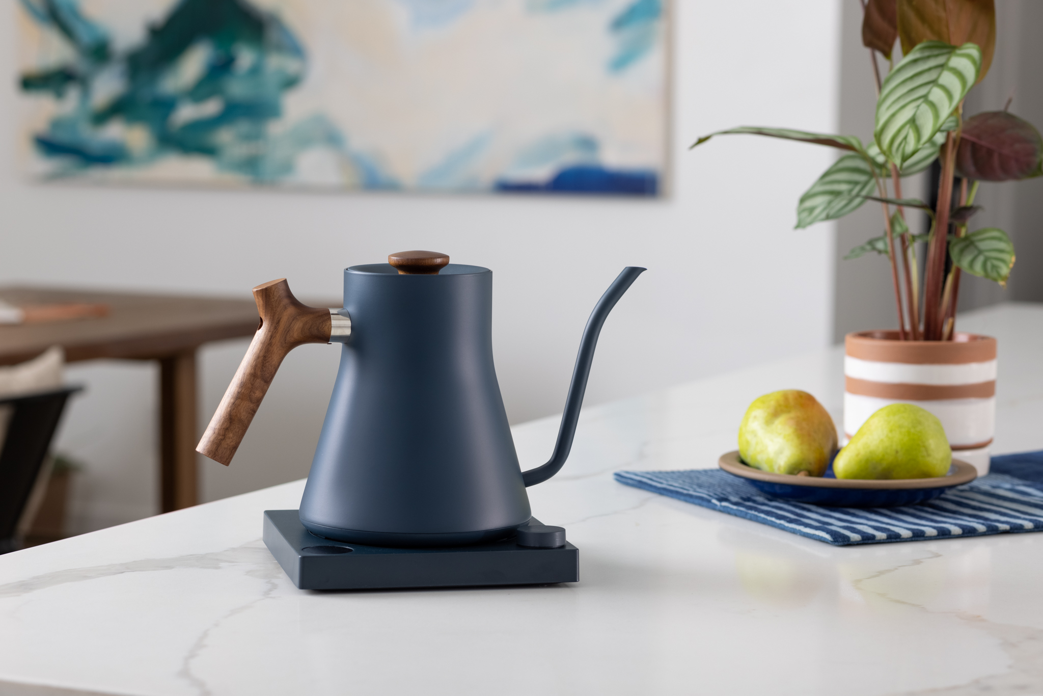 Nổi bật với sự kết hợp giữa màu xanh đá tay cầm gỗ óc chó mang đến vẻ đẹp độc đáo cho ấm FELLOW, không chỉ giúp bạn thưởng thức những tách cà phê ngon mà còn thể hiện phong cách riêng của bạn.